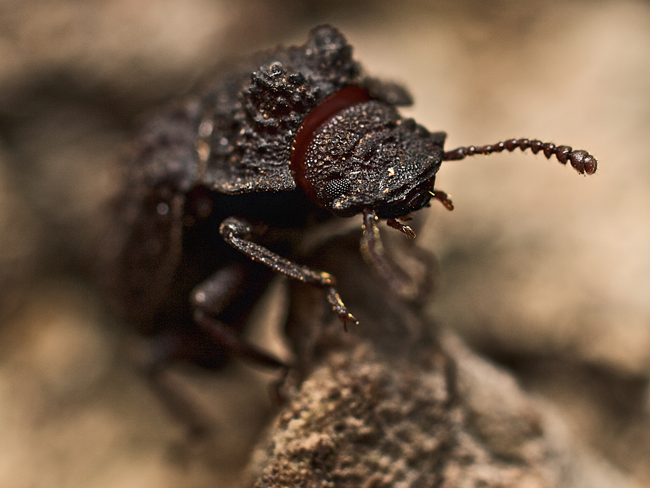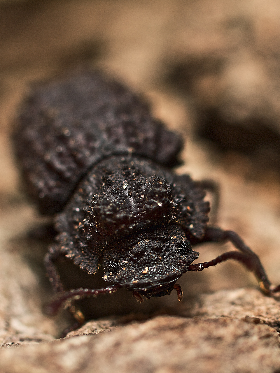 | 2008 05/16 02:33:40 同じく植物園にてクワガタゴミムシダマシ。体長8〜9mm。 ただ 図鑑を見るとコブスジツノゴミムシダマシのような気が しなくもない。教えて環境の人。 OLYMPUS ZUIKO DIGITAL 35mm F3.5 Macro + EC-14 |