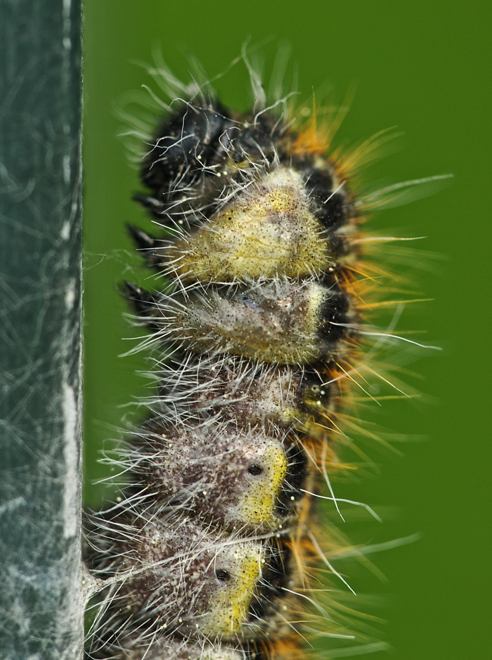 | 2008 05/01 20:56:31 50mm+テレコンだとこんな感じ。他にも3〜4匹くらい 同じ枝に集まっていた。 芋虫の類が草を食べる様は見ていて飽きない。 OLYMPUS ZUIKO DIGITAL ED 50mm F2.0 Macro + EC-14 |