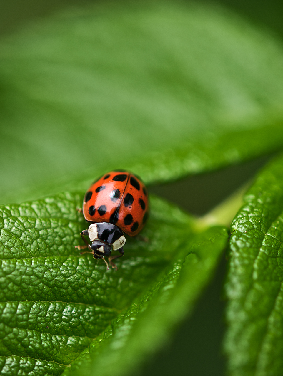 | 2008 05/26 13:24:26 ハマナスの葉に付いていたナミテントウ。胸のあたりを 見つつ撮ったら 目のピントをすこし外してしまった‥ OLYMPUS ZUIKO DIGITAL ED 50mm F2.0 Macro + EC-14 |