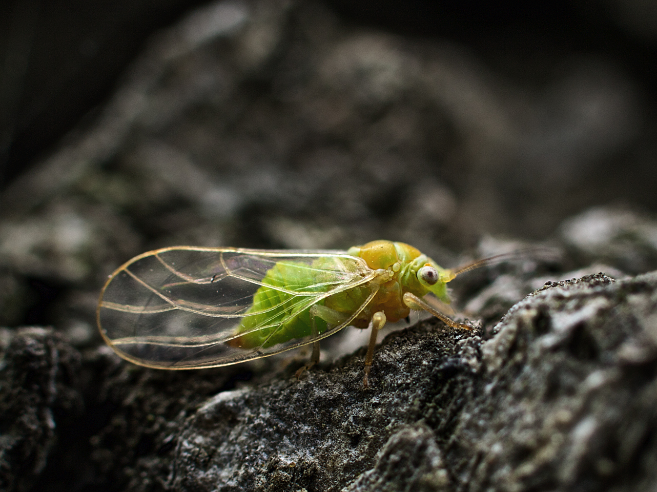 | 2008 05/31 19:48:42 木の下を大量に舞っていたので 種かと思ったら 翅を含めて3〜4mmのセミっぽい虫だった。キジラミ という名までは分かったが、詳しい種類は特定できず。 OLYMPUS ZUIKO DIGITAL 35mm F3.5 Macro + EX-25 |