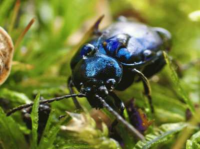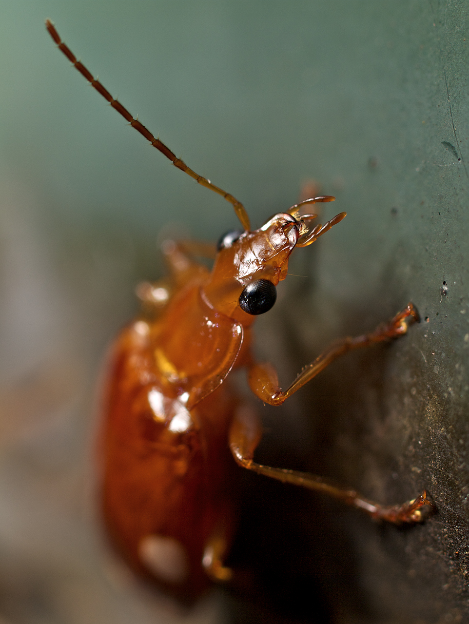 | 2008 10/15 00:43:20 ここしばらく詰まっていた仕事が終わったので、 久々に夜中 虫を撮りに出かけてみた。飴色の甲虫は ヤホシゴミムシ。延々 ハムシの項を調べても見つからず、 適当にページをめくっていたら "オサムシの仲間" で発見 できた。そういえば ハムシにこんな牙は生えていない‥ OLYMPUS ZUIKO DIGITAL 35mm F3.5 Macro + EC-14 |
