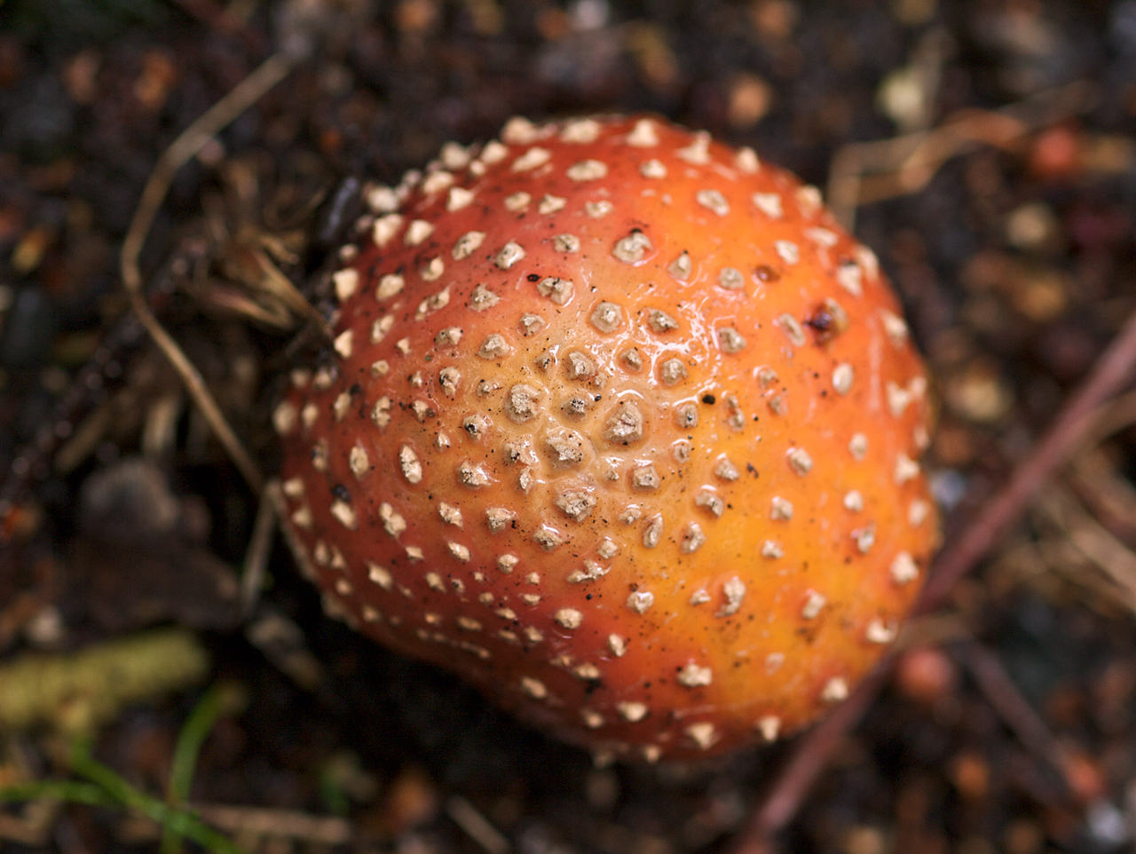 | 2008 10/24 19:15:45 近所に生えている白樺の根元で見つけた 7cm くらいあるキノコ。Webで調べた限りでは ベニテングタケっぽいが、柄(茎)が よく 見えないため断定できず。 SIGMA APO MACRO 150mm F2.8 EX DG HSM |