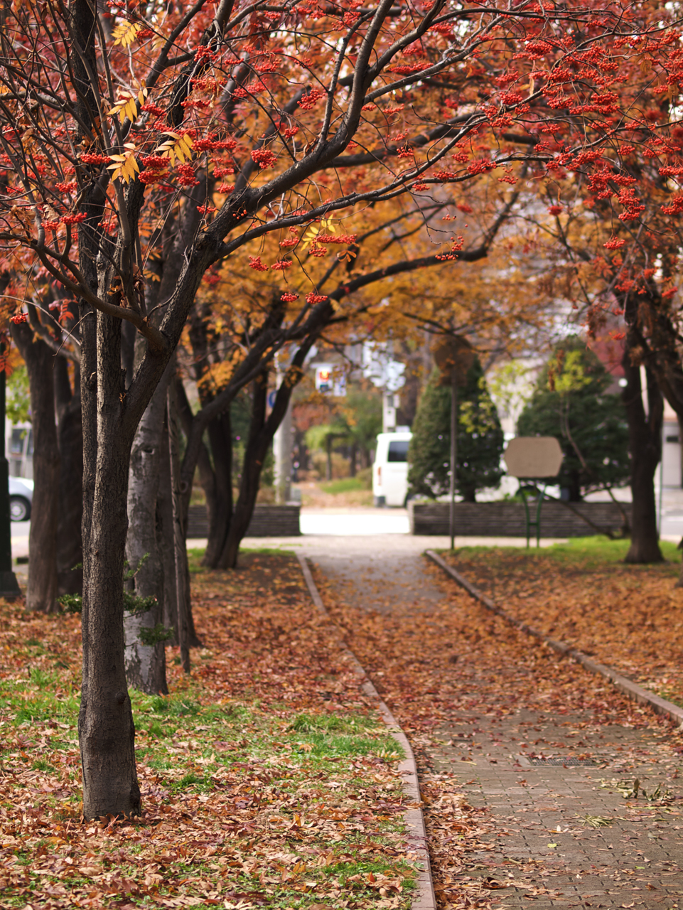 | 2008 10/12 19:41:15 夕方 買い出しついでに大通公園へ寄ったら 既にかなり紅葉している木があった。 途中で用事が入ったため、(何故かいつも カメラを構えると電話がかかってくる気がする) 撮れたのは結局この一枚のみ。 OLYMPUS ZUIKO DIGITAL ED 50mm F2.0 Macro |