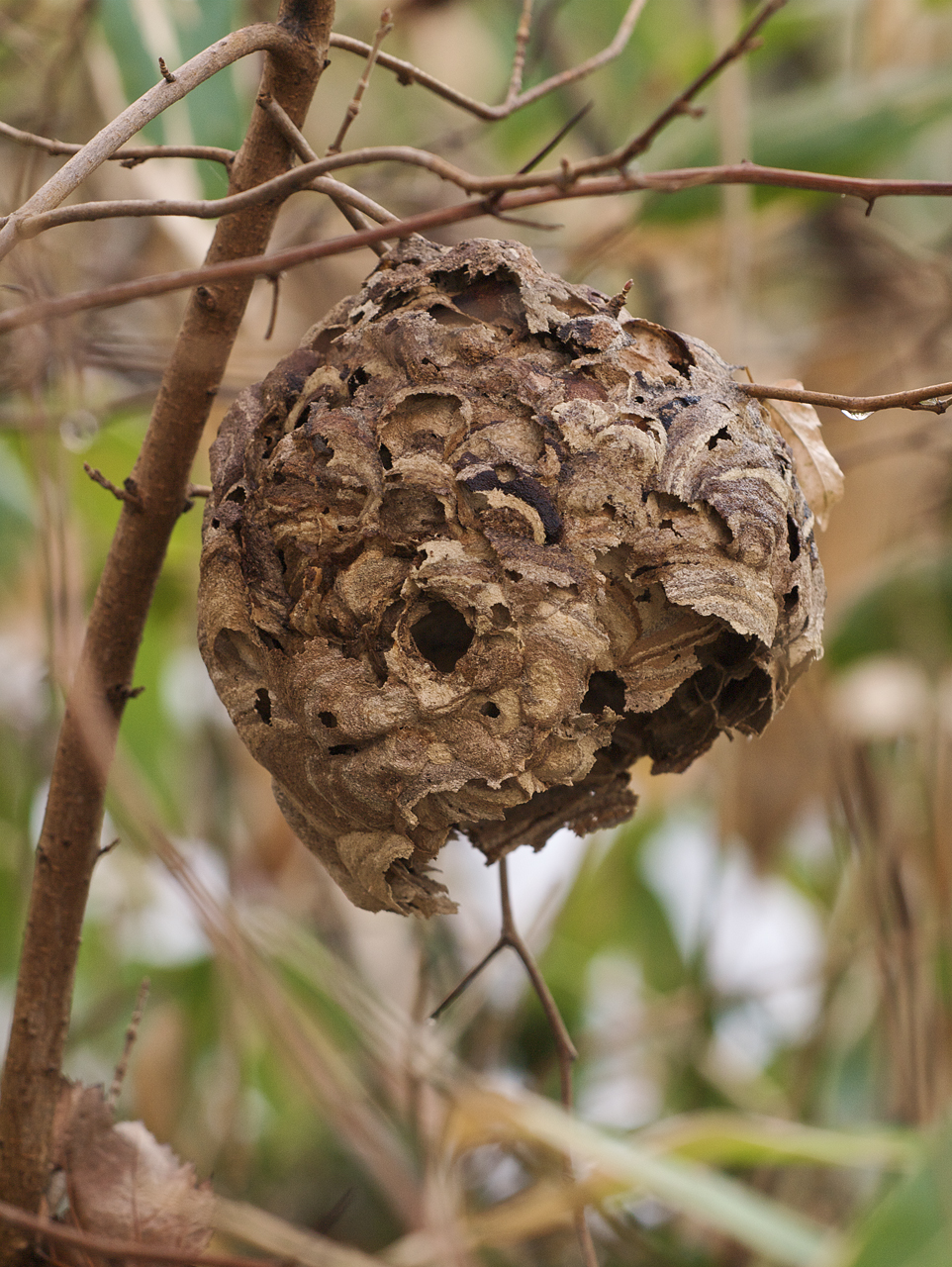 | 2008 11/28 00:56:37 植物園の外れにあった 直径15〜20cmくらいある蜂の巣。 冬になってから見つかるケースが多いのは残念なところ。 SIGMA APO MACRO 150mm F2.8 EX DG HSM |