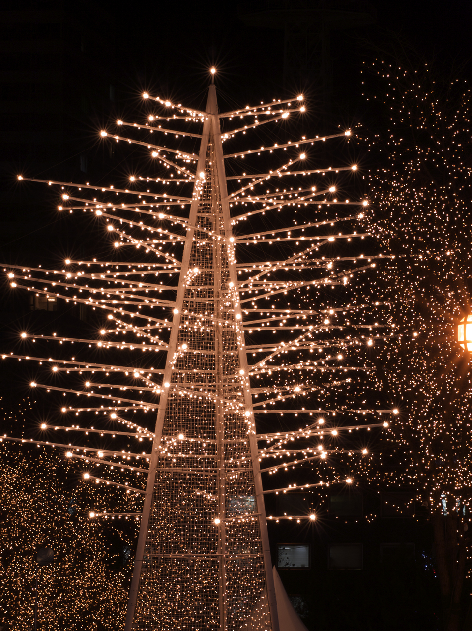 | 2008 12/09 03:33:24 大通公園にて。 上のは ズームリングを持って 本体を回しつつ撮影。 たまたま訪れた日記サイトに載っていたので 真似してみたが 当然のように手ぶれするため難しすぎる。 これ用の三脚座でもあれば。 OLYMPUS ZUIKO DIGITAL 11-22mm F2.8-3.5 |