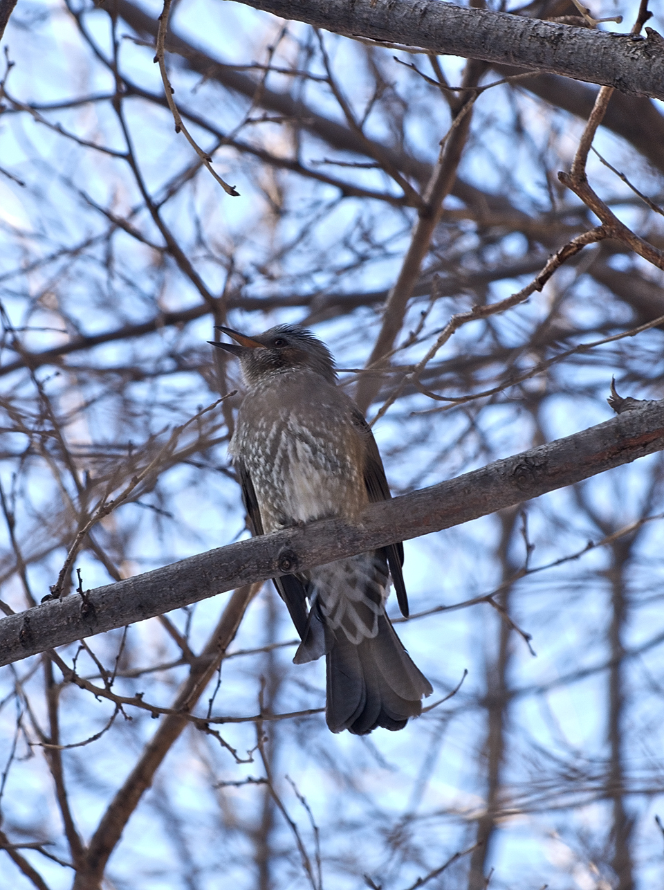 | 2008 12/22 15:52:39 鳩と ヒヨドリ再び。ヒヨドリは 小鳥として見れば比較的 大きいが、あんまり高くに居ると 換算400mmでも厳しい。 ‥ここはやはり 70-300mmを導入すべきなのか。 あと、鳩の顔が何とも喜ばしい感じに。 SIGMA APO MACRO 150mm F2.8 EX DG HSM + EC-14 |