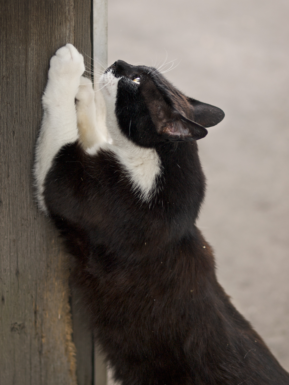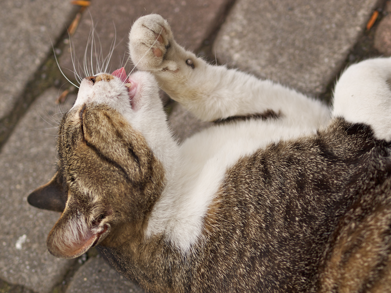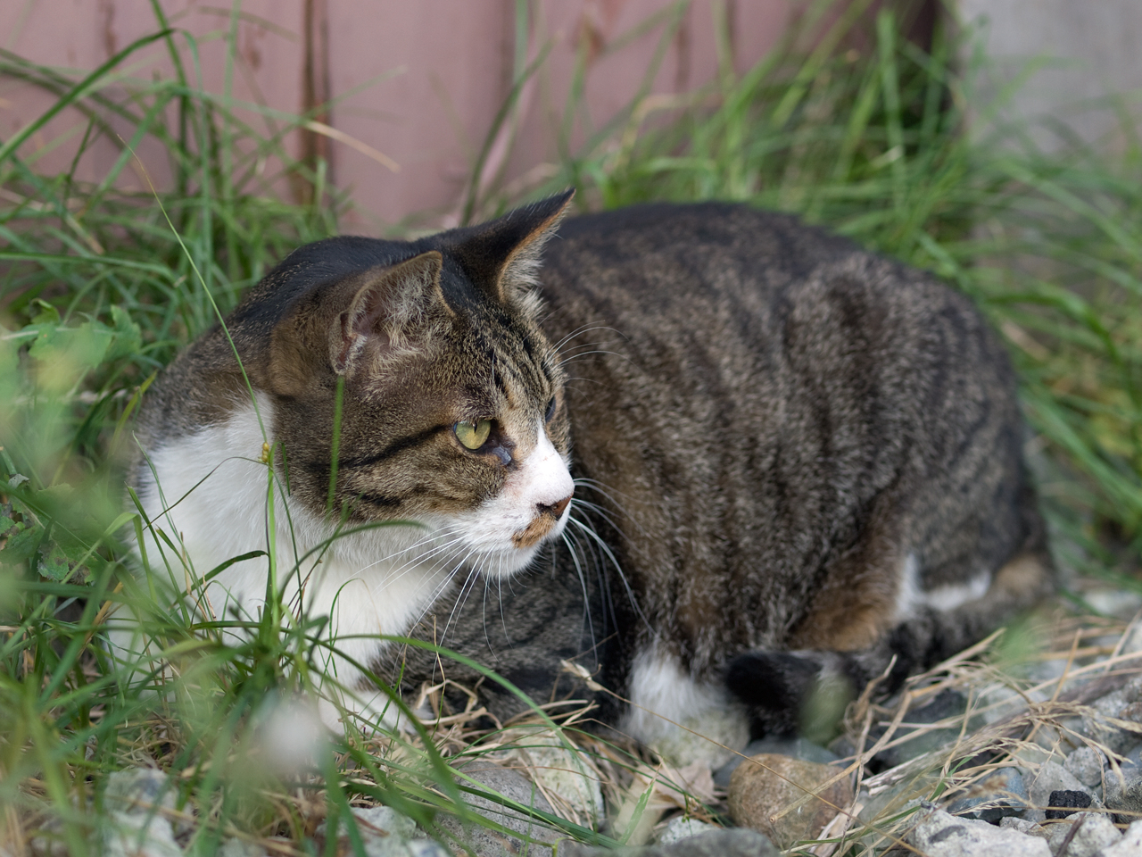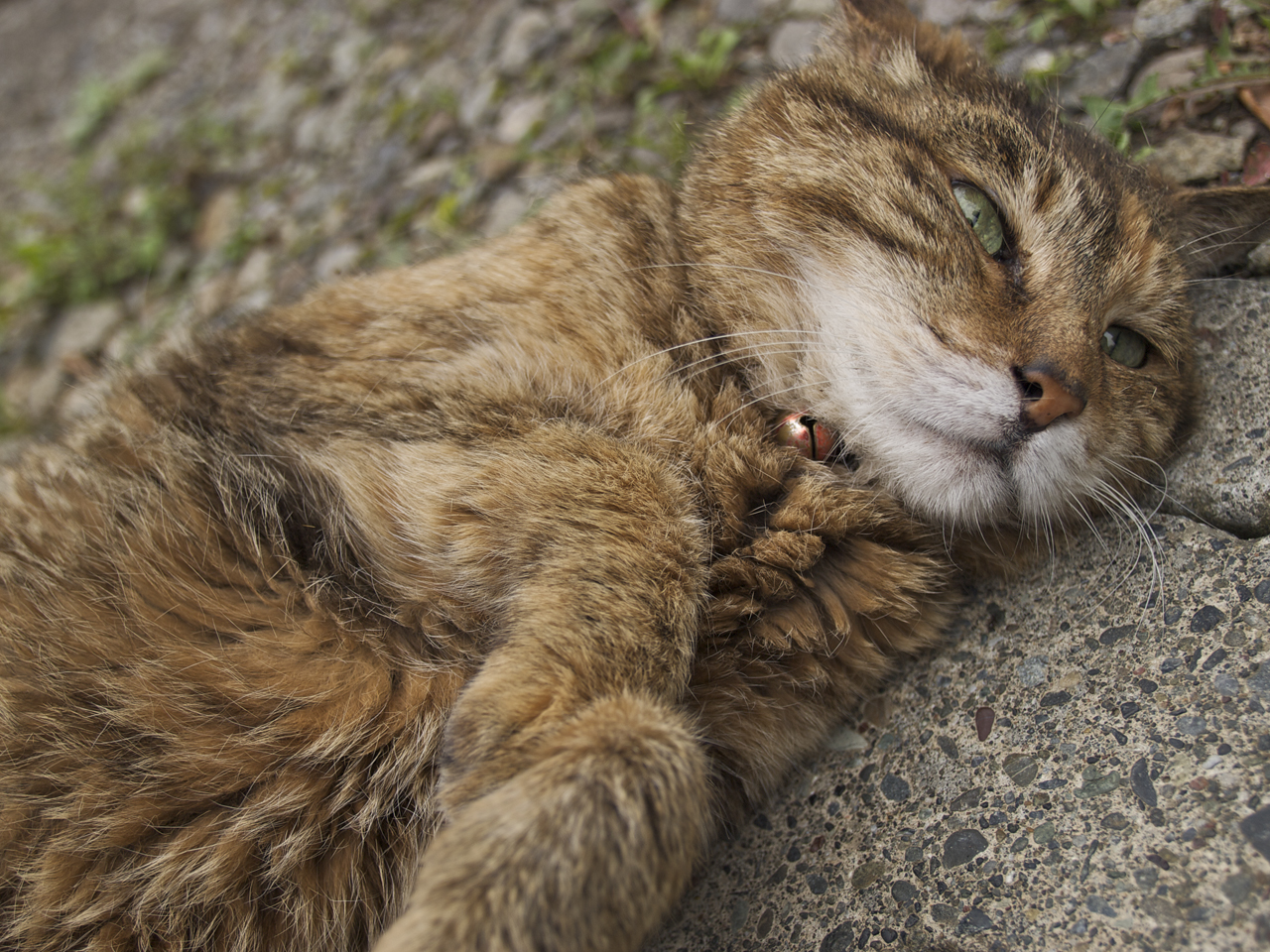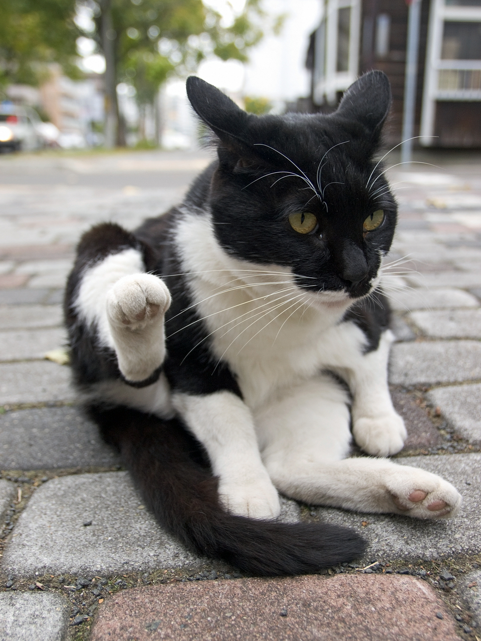 | 2009 07/28 19:37:01 近所で見かけた新猫。首輪をしているので、 脱走とかでなければ飼い猫。その割には いつも撮っている二匹に比べると全体的に 仕草が雑っぽかった。 OLYMPUS ZUIKO DIGITAL 11-22mm F2.8-3.5 |