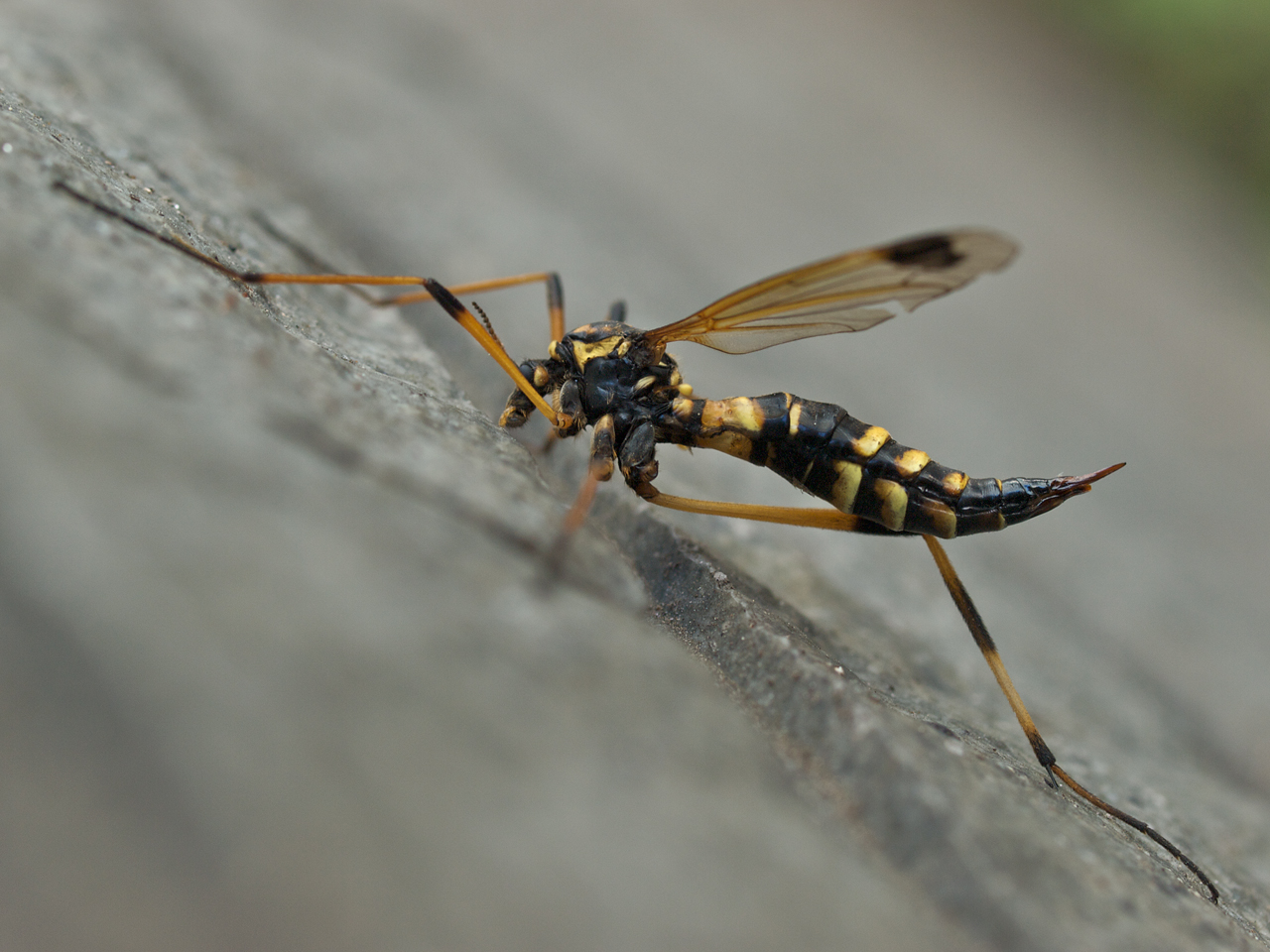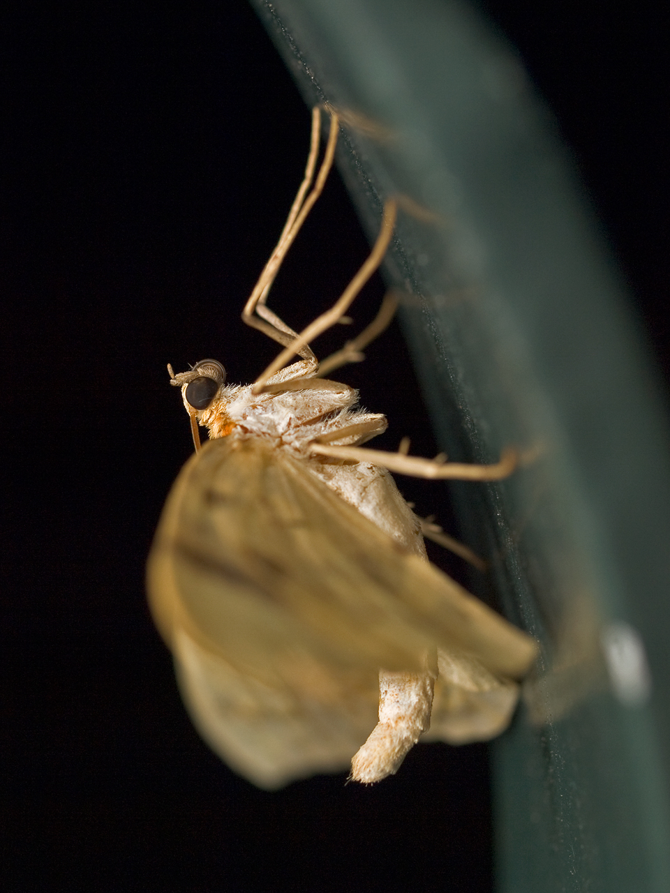 | 2009 07/12 18:39:26 植物園外周にて マルモンクシヒゲガガンボ。 ただし 触角が櫛状なのはオスのみで、写真のはメス。 よく見たら左の後脚が取れてしまっていた。 OLYMPUS ZUIKO DIGITAL ED 50mm F2.0 Macro |