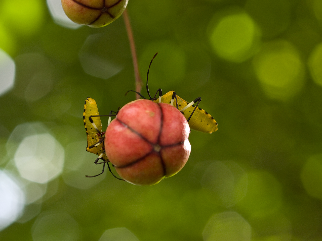 | 2009 09/11 19:26:50 買い出しついでに植物園外周で スジグロシロチョウと、 ツリバナの汁を吸っていたキバラヘリカメムシ。 OLYMPUS ZUIKO DIGITAL ED 50mm F2.0 Macro |