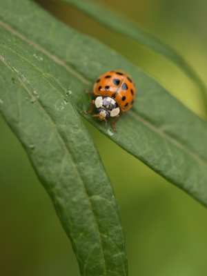 | 2009 07/04 20:06:30 道端にて マメ科っぽい花と、近くのヨモギに付いていた 十九紋のナミテントウ。 OLYMPUS ZUIKO DIGITAL ED 50mm F2.0 Macro |