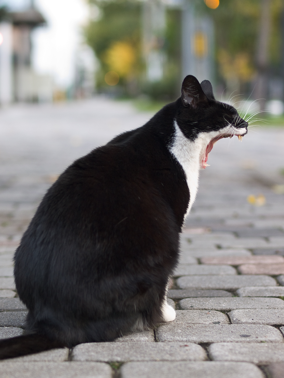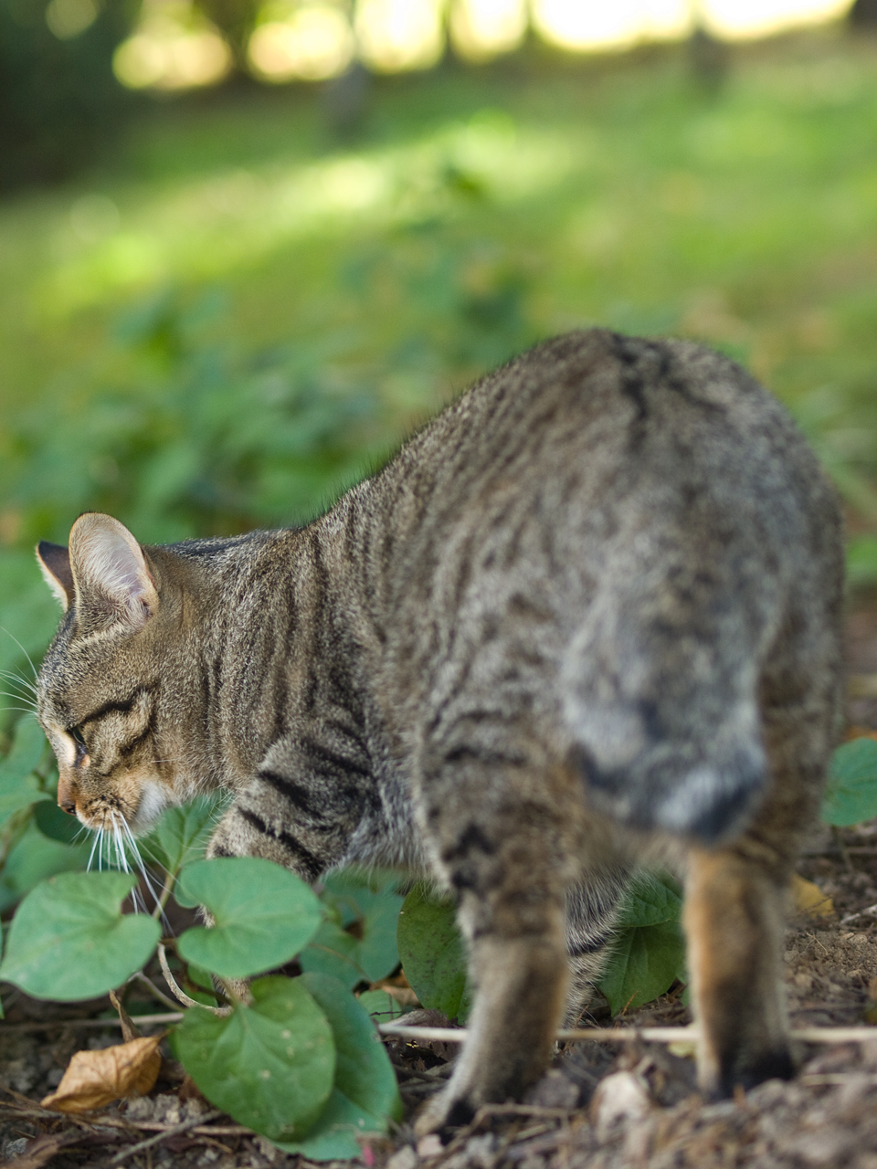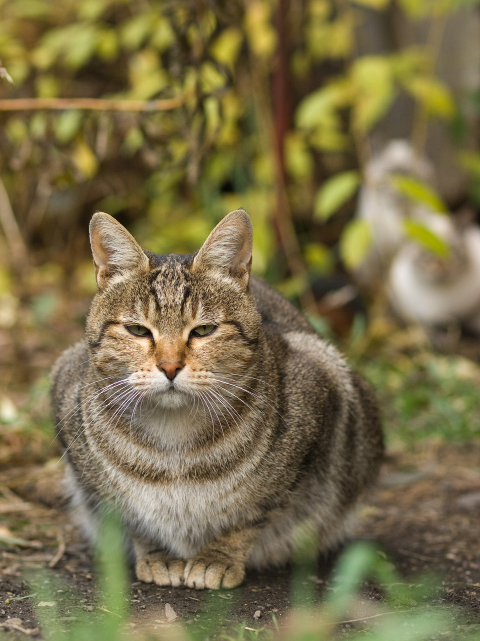 | 2009 10/24 19:44:47 今月7日に載せた清華亭南向かいの公園近くにて。 よく見ると画面右端にも猫のしっぽが。 SIGMA APO MACRO 150mm F2.8 EX DG HSM |