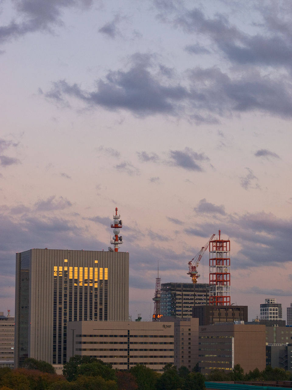 | 2009 11/03 19:34:47 仕事で行った出先からの札幌市街と 夕方 床屋の帰りに通った大通公園脇の工事中ビル。 OLYMPUS ZUIKO DIGITAL 11-22mm F2.8-3.5 |