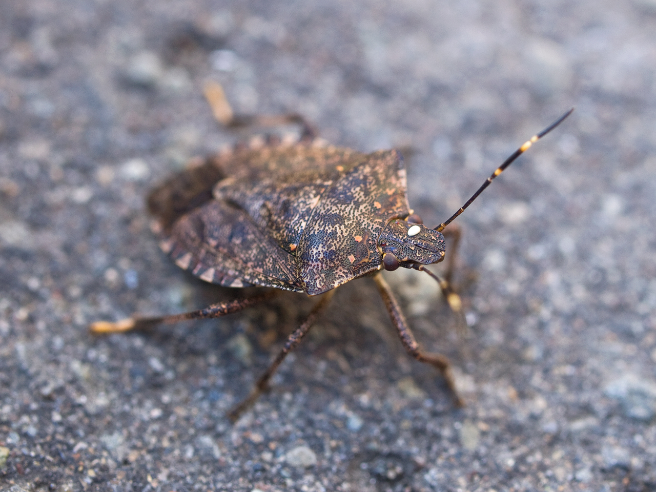 | 2009 10/17 21:44:24 事務所前にてクサギカメムシ。カメムシを撮ると ときどき頭に付いている白い粒の正体が気になる。 寄生虫か何か? OLYMPUS ZUIKO DIGITAL ED 50mm F2.0 Macro |