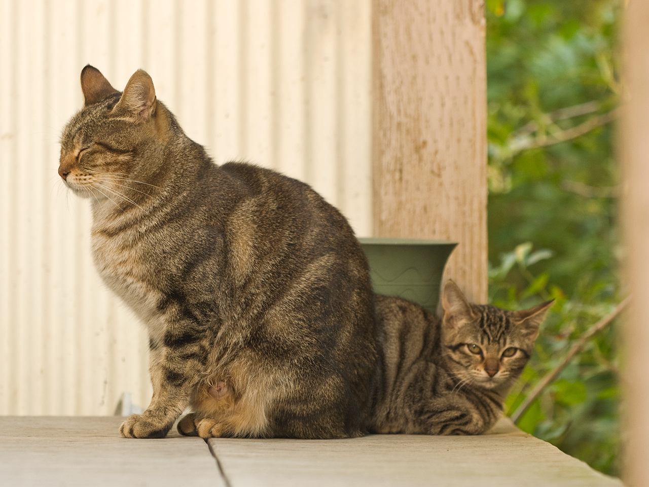 | 2009 12/26 17:41:51 二連。実は後方にもう二匹いる。 神社裏の廃屋に住んでいるのだが、 顔を見せると次々集まってくるようになった。 OLYMPUS ZUIKO DIGITAL ED 50mm F2.0 Macro |