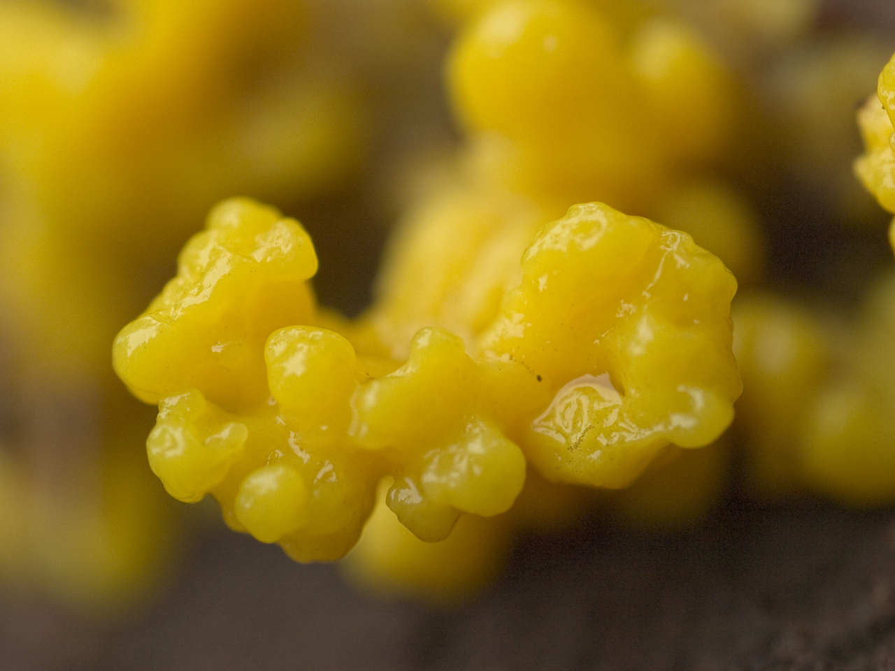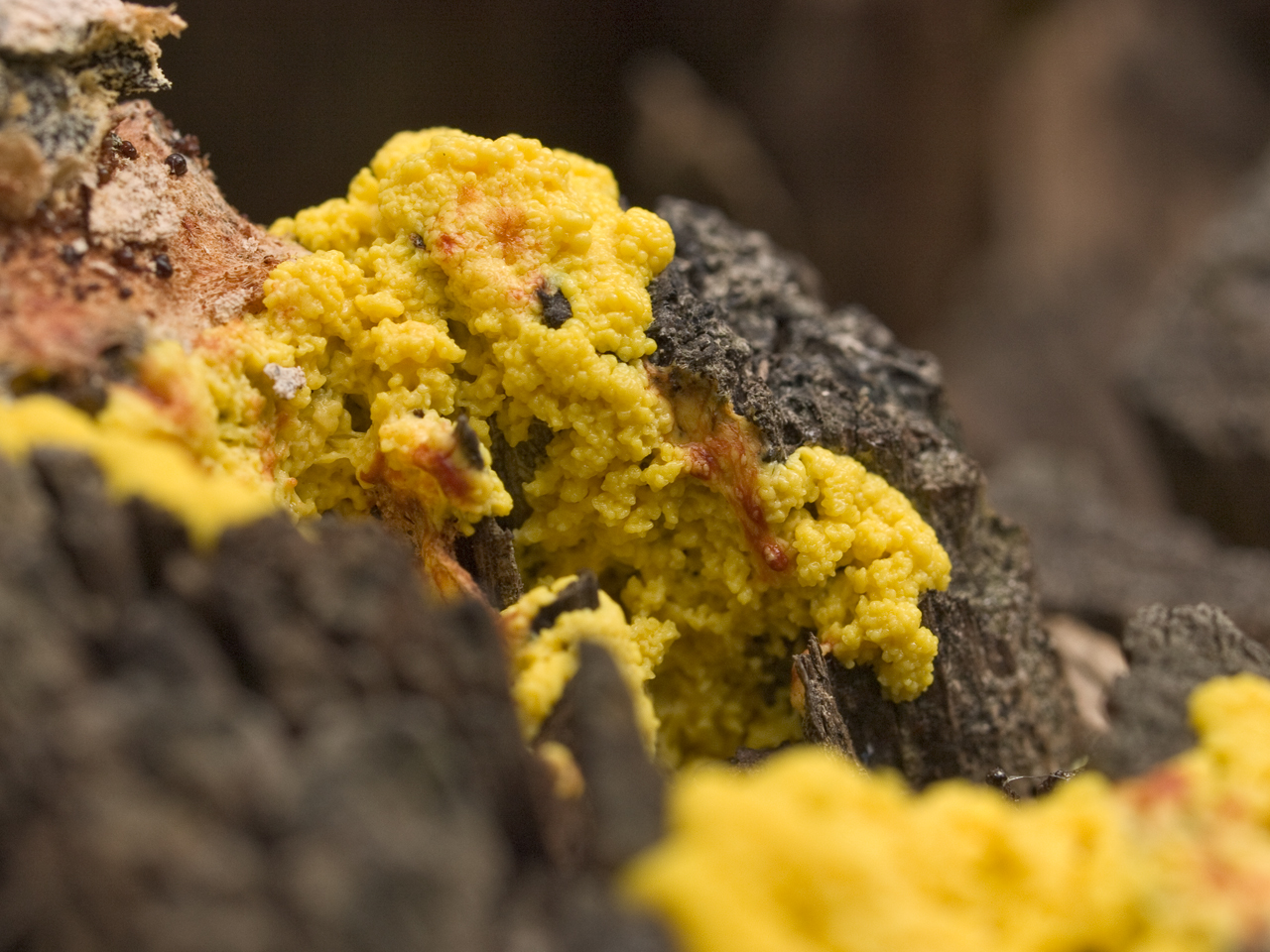 2010 07/01 16:04:06 切り株についていた粘菌。下の状態から 上の写真のようになるまで約1分。 (画面の幅は5mmくらい) 呼吸するように伸縮しながら、少しずつ 移動していた。 OLYMPUS ZUIKO AUTO-MACRO 20mm F2.0 | |