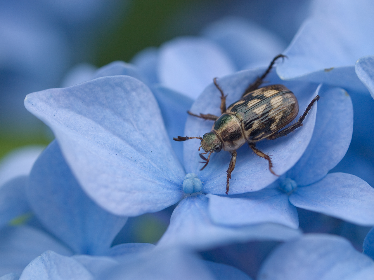2010 07/13 23:14:12 ようやく色が付き始めたアジサイと、 清華亭のそばで見つけたオオマエグロメバエ。 羽の前半分が 黒‥というより瑠璃色に輝いて 綺麗だった。 OLYMPUS ZUIKO DIGITAL ED 50mm F2.0 Macro | |