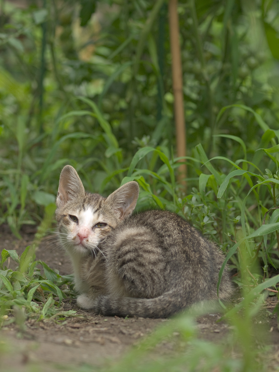 2010 07/09 19:04:15 清華亭の近くで、先日とは違う家族の子猫。 テレコンを付けると、シャープさと引き換えに 後ぼけの荒れが若干軽減される‥ような気がする。 OLYMPUS ZUIKO DIGITAL ED 50mm F2.0 Macro + EC-14 | |