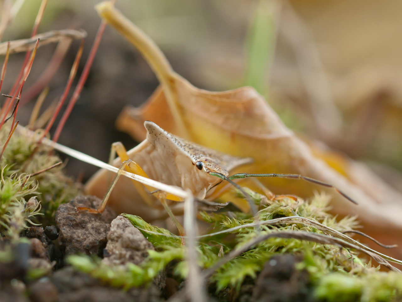 2010 11/24 18:31:24 日中の気温はさらに下がり 5度前後になる中、 神社近くの林で見慣れないカメムシが歩いていた。 図鑑にも見当たらなかったが、多分ツノカメムシの仲間。 OLYMPUS ZUIKO DIGITAL ED 50mm F2.0 Macro + EC-14 |