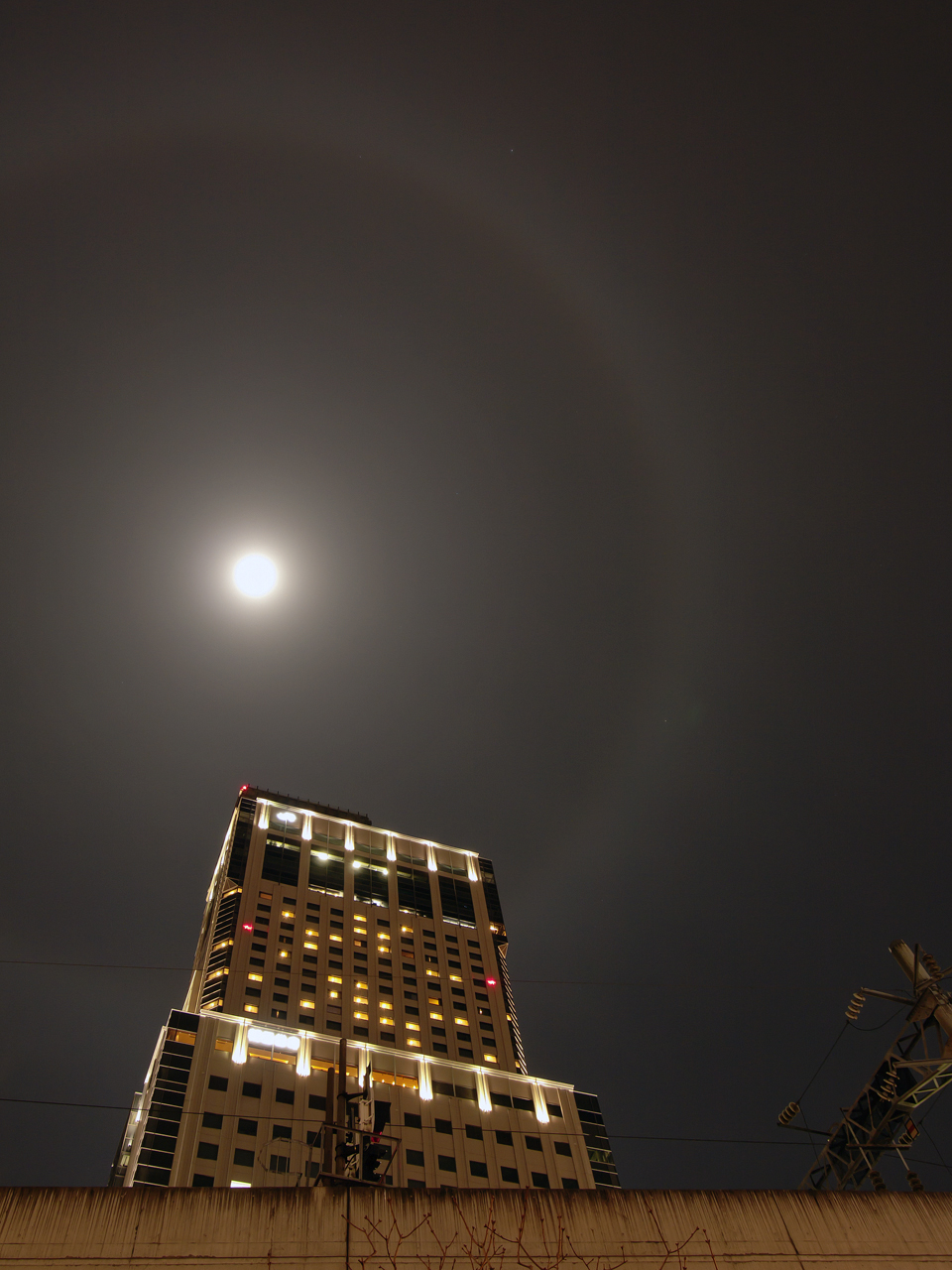 2010 12/22 01:48:36 夜ふと空を見たら、月に巨大な暈がかかっていた。 月を撮ったのはたまたまだが、夕方に月蝕が あったのを帰宅するまで知らなかったのは不覚。 OLYMPUS ZUIKO DIGITAL 11-22mm F2.8-3.5 |