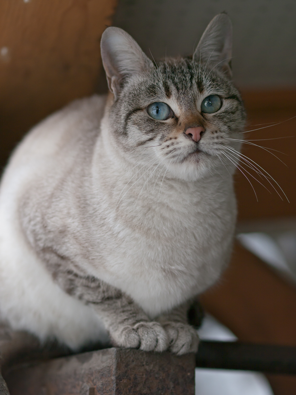 2010 12/03 01:20:43 いつもの猫その2。やはり真正面からだと、 ホワイトバランス分を差し引いても目の青が際立つ。 OLYMPUS ZUIKO DIGITAL ED 50mm F2.0 Macro |