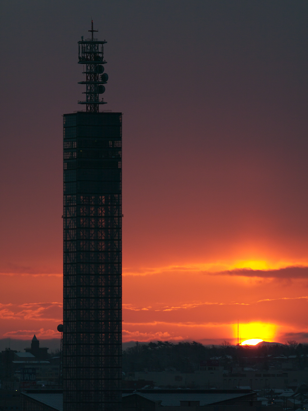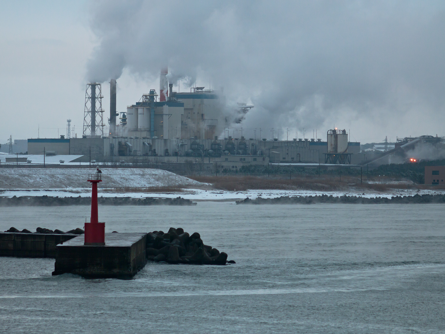 2011 01/04 02:47:48 無事札幌へ帰還。煙をあげているのは 途中で接岸していた秋田港の隣にある 日本大昭和板紙の施設。工場内から走る 秋田臨海鉄道のディーゼル車が人気らしい。 日の出脇の建物は 同じく秋田港の ポートタワー・セリオン。 OLYMPUS ZUIKO MC AUTO-T 200mm F4 |