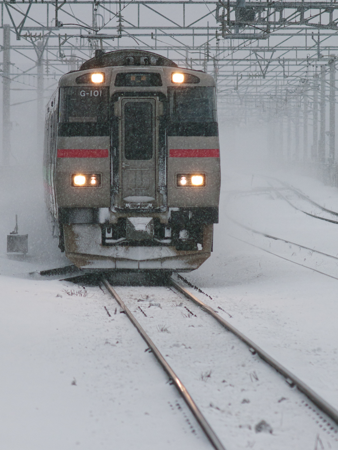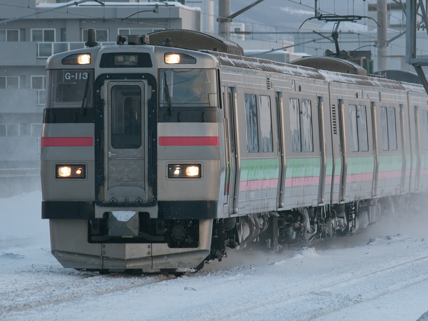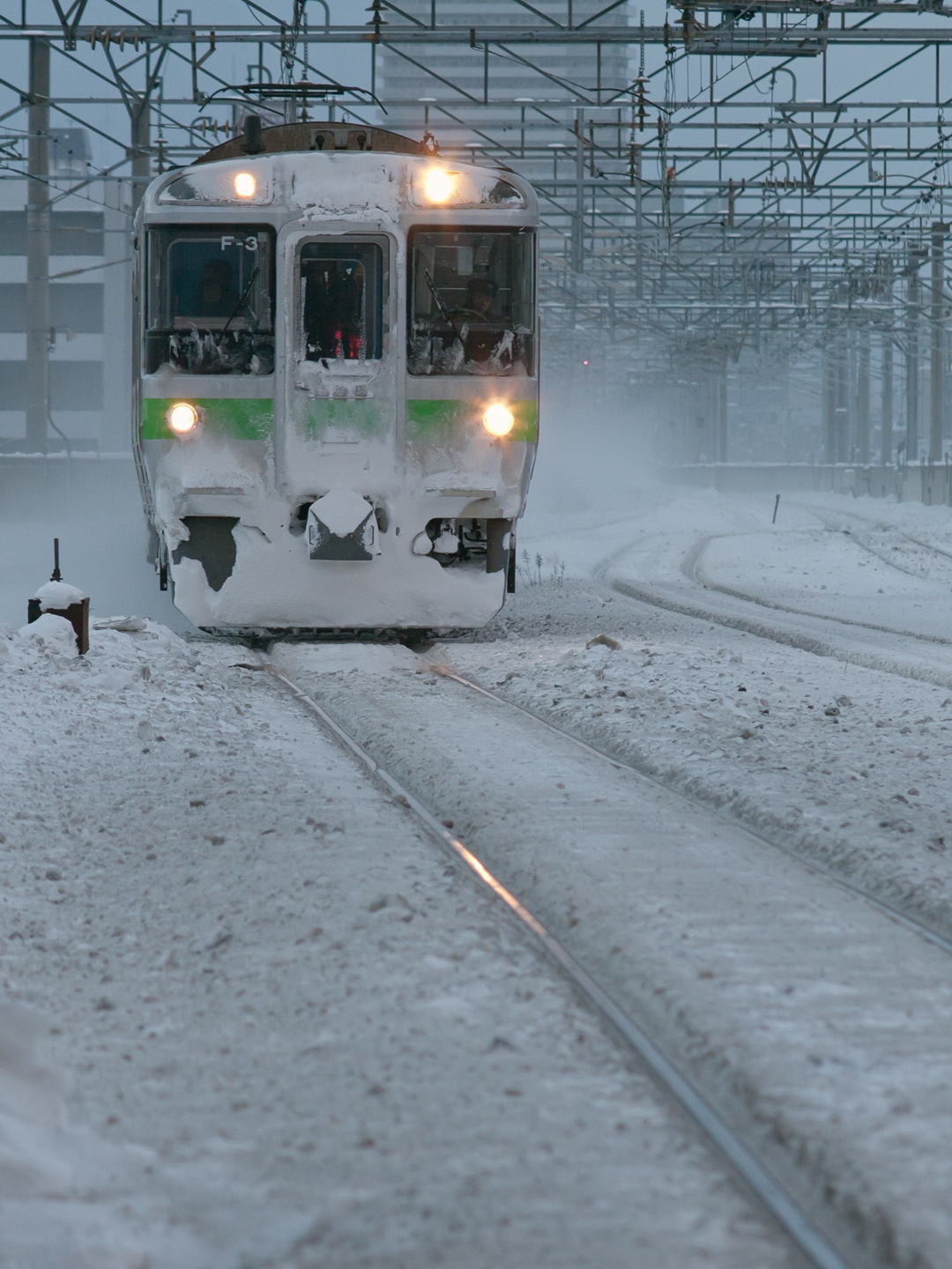 2011 01/08 17:56:04 今日は狸小路の床屋へ行った帰りに トワイライトエクスプレスを待ってみた。 時刻表および撮影時刻からすると、 月水金を除く日の13時45分頃から 札幌駅ホーム西側に居ると丁度良い感じ。 さらについでで猫にも会ってきたが、 撮る前に近くに落雪し 逃げてしまった。 OLYMPUS ZUIKO MC AUTO-T 200mm F4 |