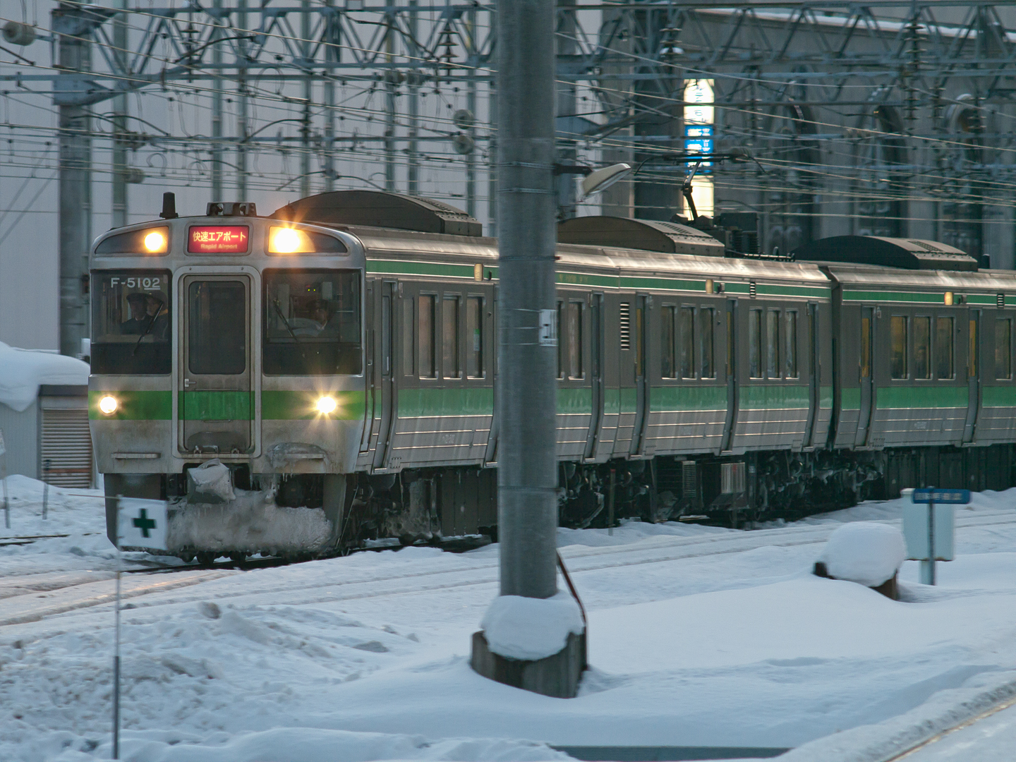 2011 02/24 00:52:58 珍しく後ろから。札幌駅東側の線路は分岐が多いため 正面から思ったように撮るのは微妙に難しい。 OLYMPUS ZUIKO MC AUTO-T 200mm F4 |