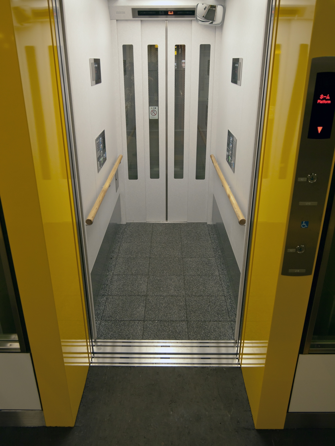 2011 03/13 19:04:02 札幌駅に最近設置された今風のエレベーター。 見た感じ平行四辺形なので強度は気になるところだが、 車椅子や台車などは 幅さえ足りれば使いやすそう。 OLYMPUS ZUIKO DIGITAL 11-22mm F2.8-3.5 |