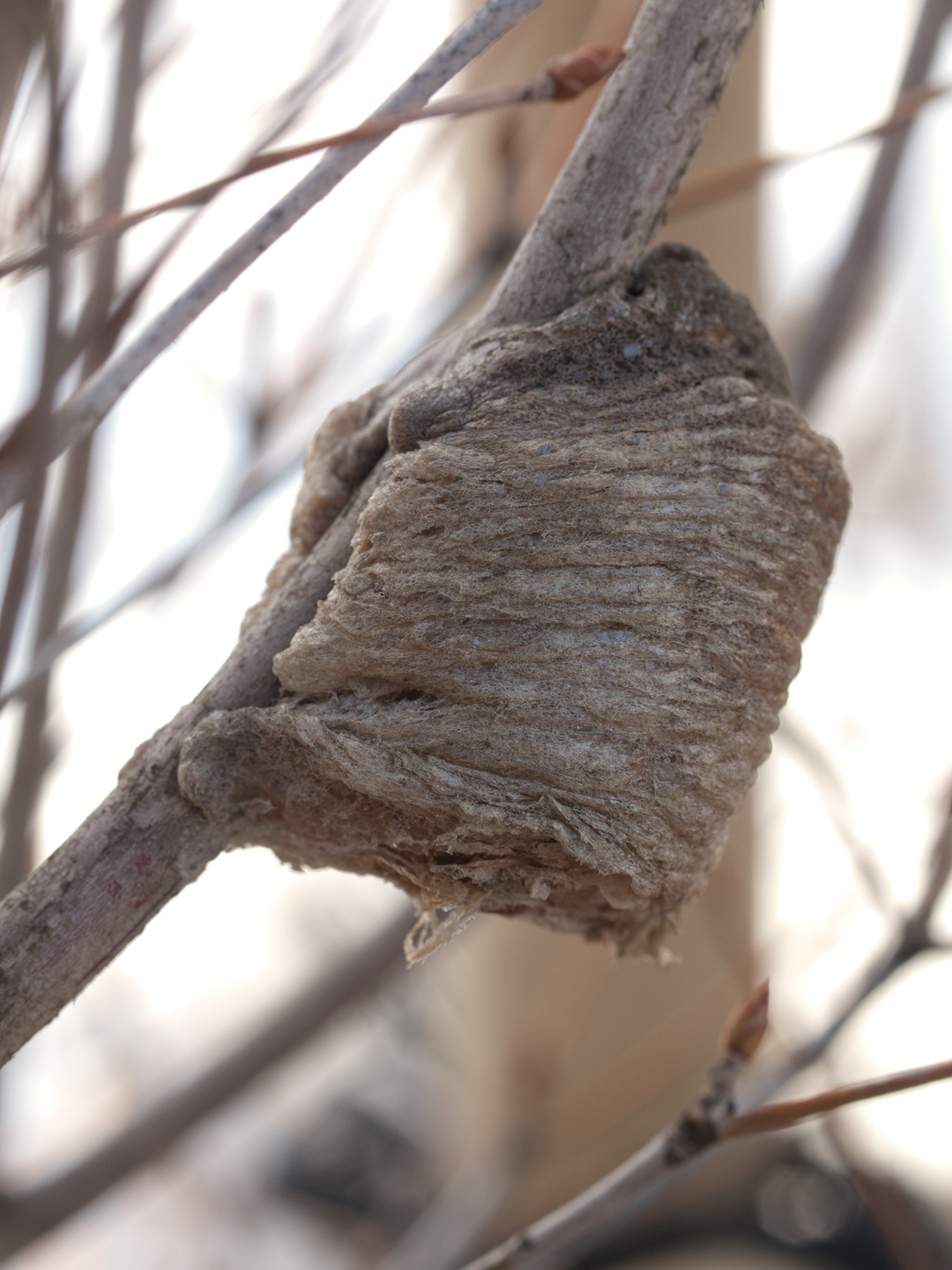 2011 03/27 18:33:30 人家の柵にくっついていた卵。 形はオオカマキリのものに似ているが、札幌で 成虫を見たことはないので 合っているかどうか‥ OLYMPUS ZUIKO DIGITAL ED 50mm F2.0 Macro |