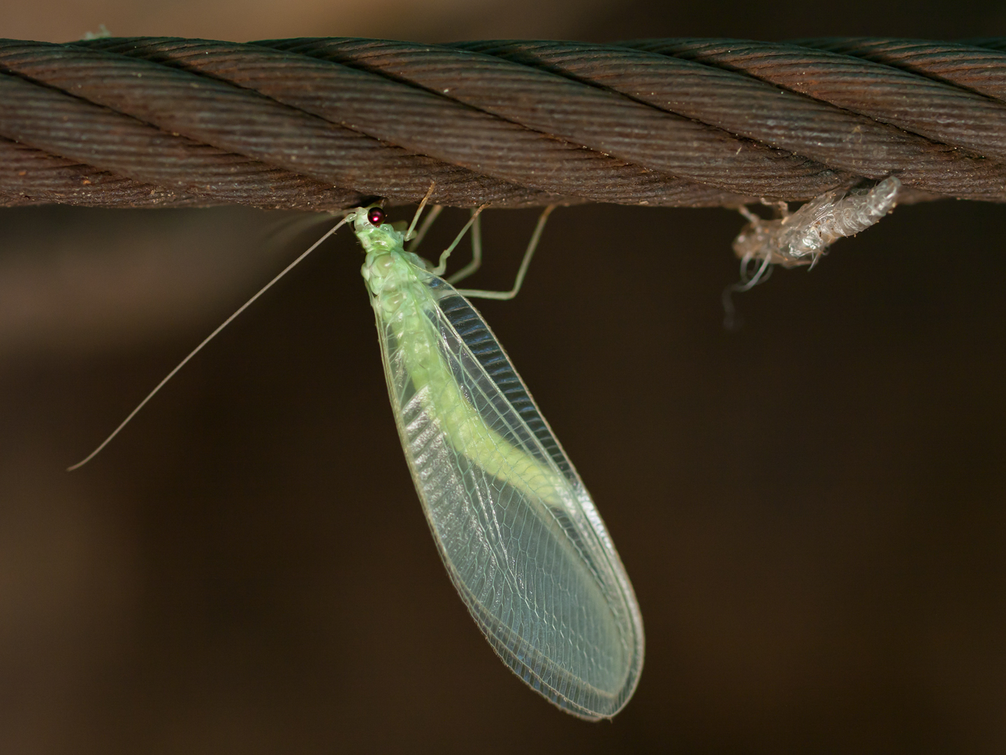 2011 06/18 23:29:39 買い出しのついでに三岸好太郎美術館の中庭へ 寄ったところ、羽化したてのクサカゲロウを見つけた。 この直後 通りすがりの蟻に突き落とされていたが、 既に翅は乾いていたようで安心。 OLYMPUS ZUIKO DIGITAL 11-22mm F2.8-3.5 |