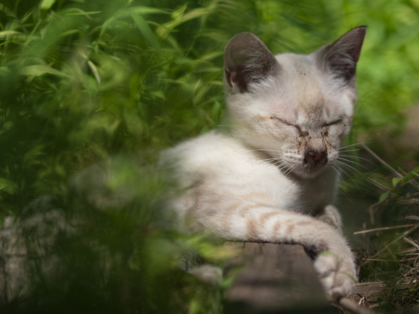 2011 07/19 20:28:49 猫が居なくなってしまったと思っていた神社裏へ 久々に寄ったところ、そこには無邪気にはしゃぎ回る 子猫達の姿が。 ‥聞くところでは、ここに居たうちの一匹が 別の場所で 5匹ほど産んで 皆で戻ってきたらしい。 OLYMPUS ZUIKO DIGITAL ED 50mm F2.0 Macro |
