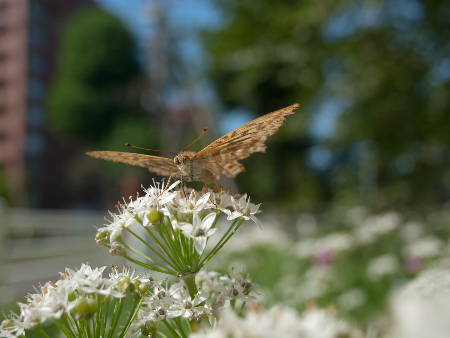 2011 09/25 04:33:36 北大近辺にある集合住宅の庭を見たら、 ずいぶん多くの蝶が飛んでいた。 オレンジ色の方はアカタテハ、正面からのは ミドリヒョウモン。 OLYMPUS ZUIKO DIGITAL 11-22mm F2.8-3.5 |