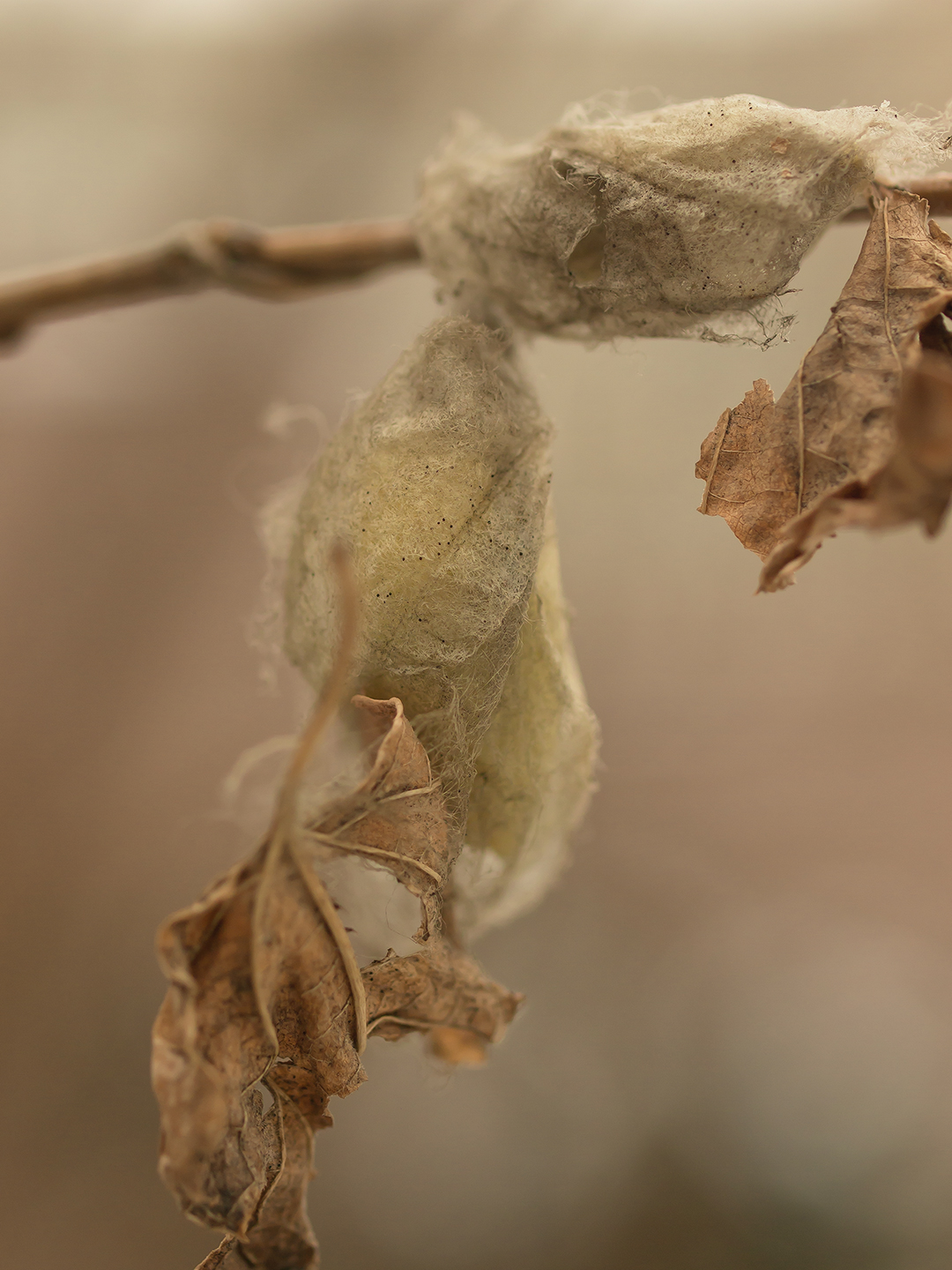 2012 12/23 06:09:41 人家の庭先から伸びた枝に繭を見つけた。 クワコの繭に似ている気はするが、 付いていたのが何の木かは確認しそこねた。 OLYMPUS ZUIKO DIGITAL ED 50mm F2.0 Macro |