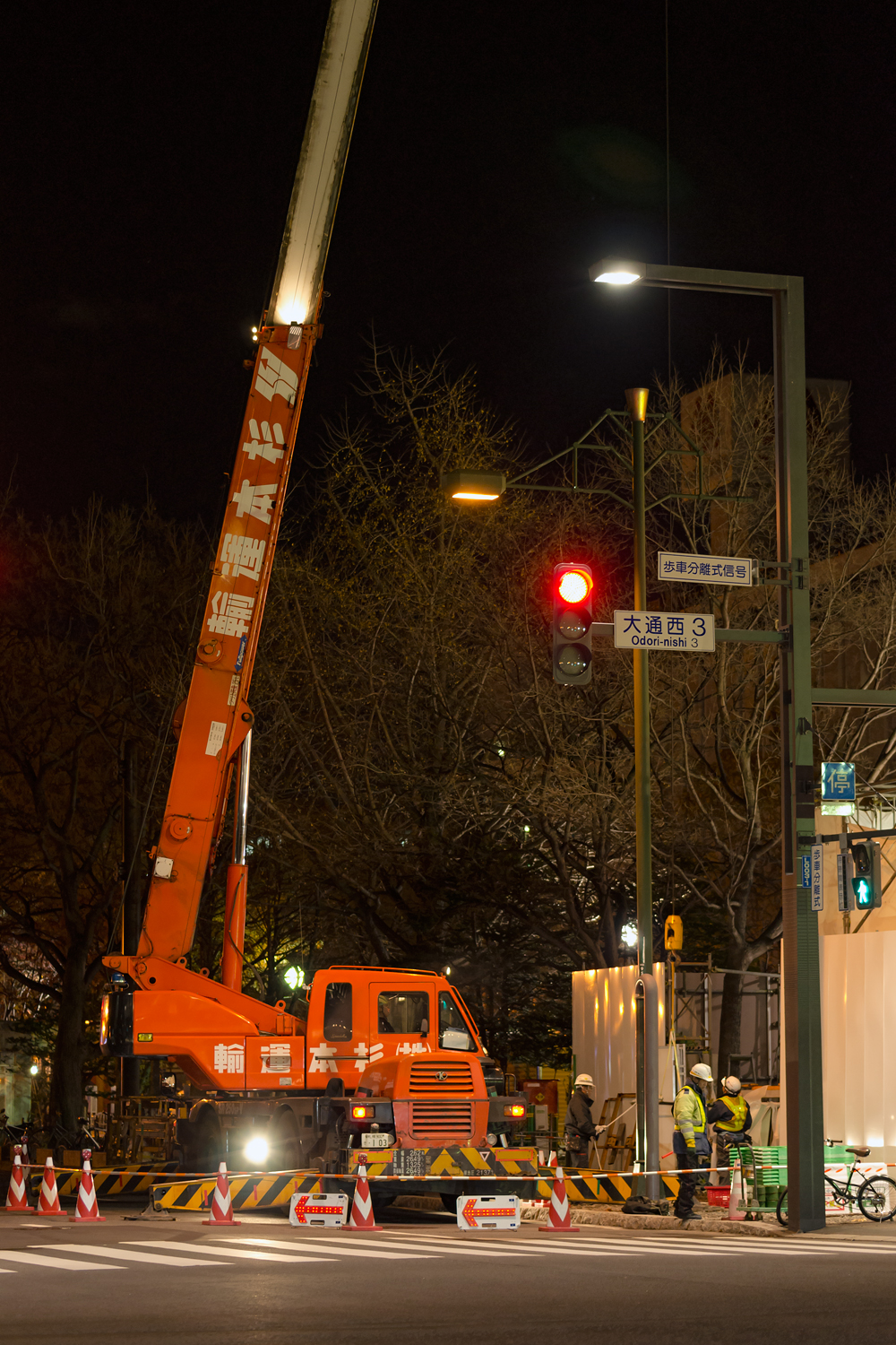 2013 11/27 01:01:49 先週末は二人で下水道科学館まで。 帰る頃には日が暮れていたため 大通公園に寄って ホワイトイルミネーションを撮ることができた。 軍手は 目の前でカラスが落としていったもの。 散布業務の手伝いだろうか。 NIKON EL-NIKKOR 50mm F2.8N |