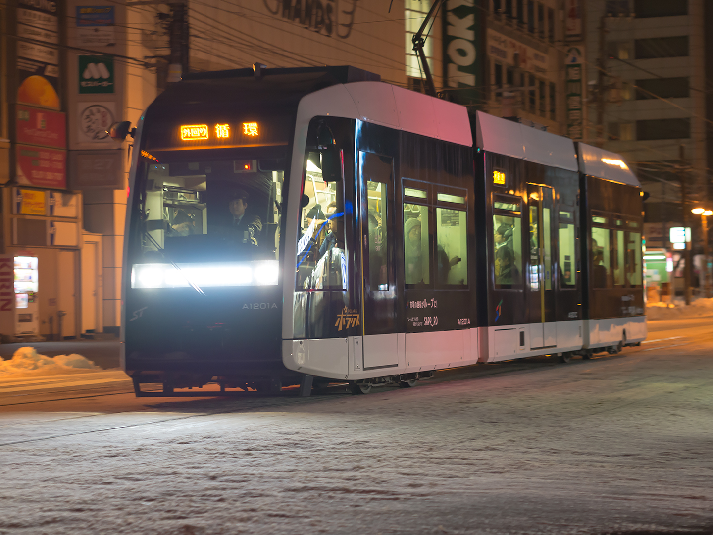 2015 12/21 19:24:36 明け方に会社から帰る途中 当日開業の 循環市電が走っていた。 ついでに付近の様子も。 R0010081.html 全天球画像を貼る際に、元サイズが2の累乗でないため 解像度が低くなっている模様。FLASHの使用や 画像の再書き出しなどをせずに解決したいところ。 OLYMPUS M.ZUIKO DIGITAL 45mm F1.8 ISO800・45mm・F2.2・1/25s |